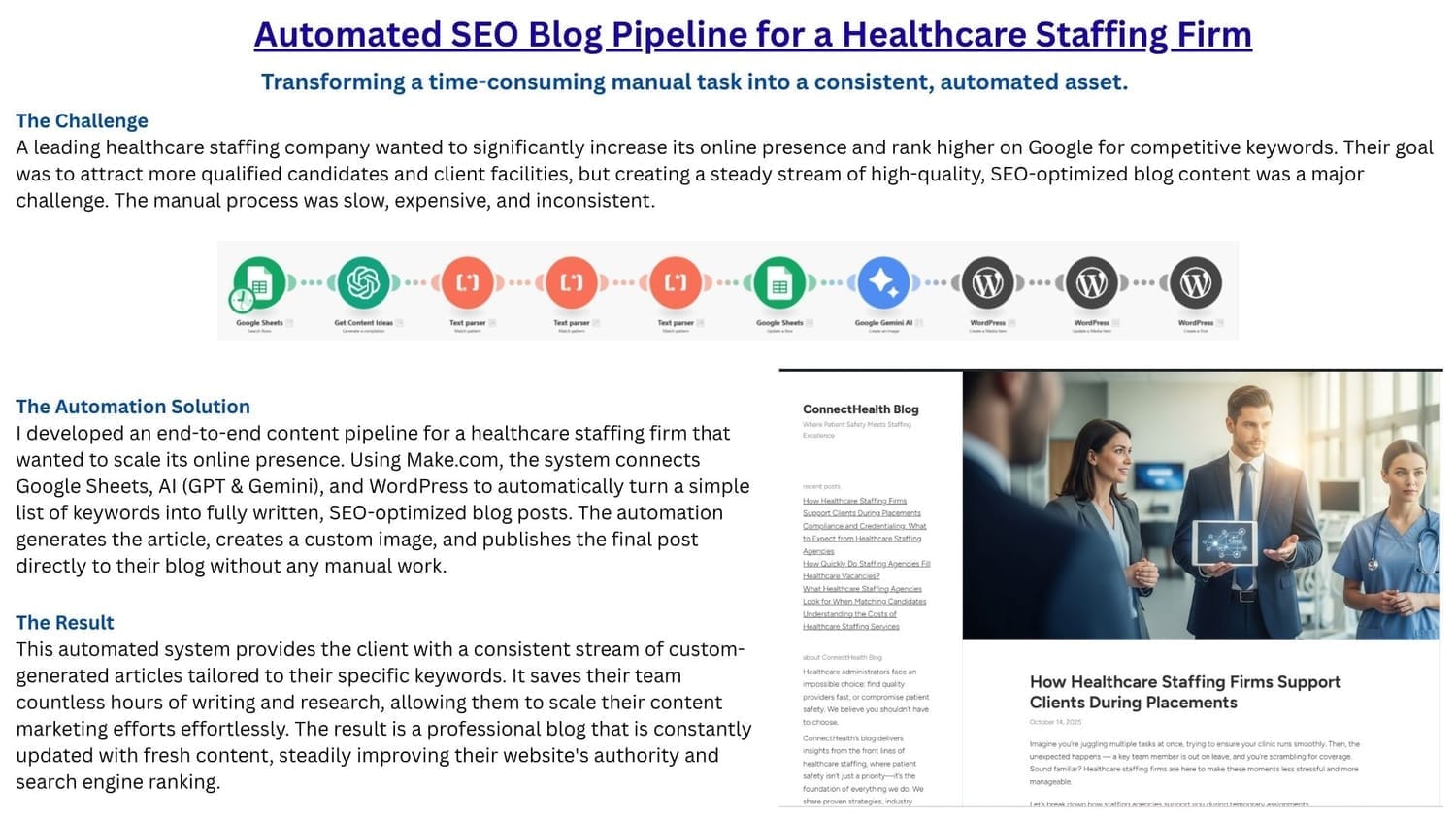 The owner of a busy roofing company was getting traffic to his website but never checked his Google Analytics. He didnโt have the time or interest to log in and interpret the data. I built a system that automatically pulls the last week of GA4 data every Sunday and uses AI to summarize it in plain English.